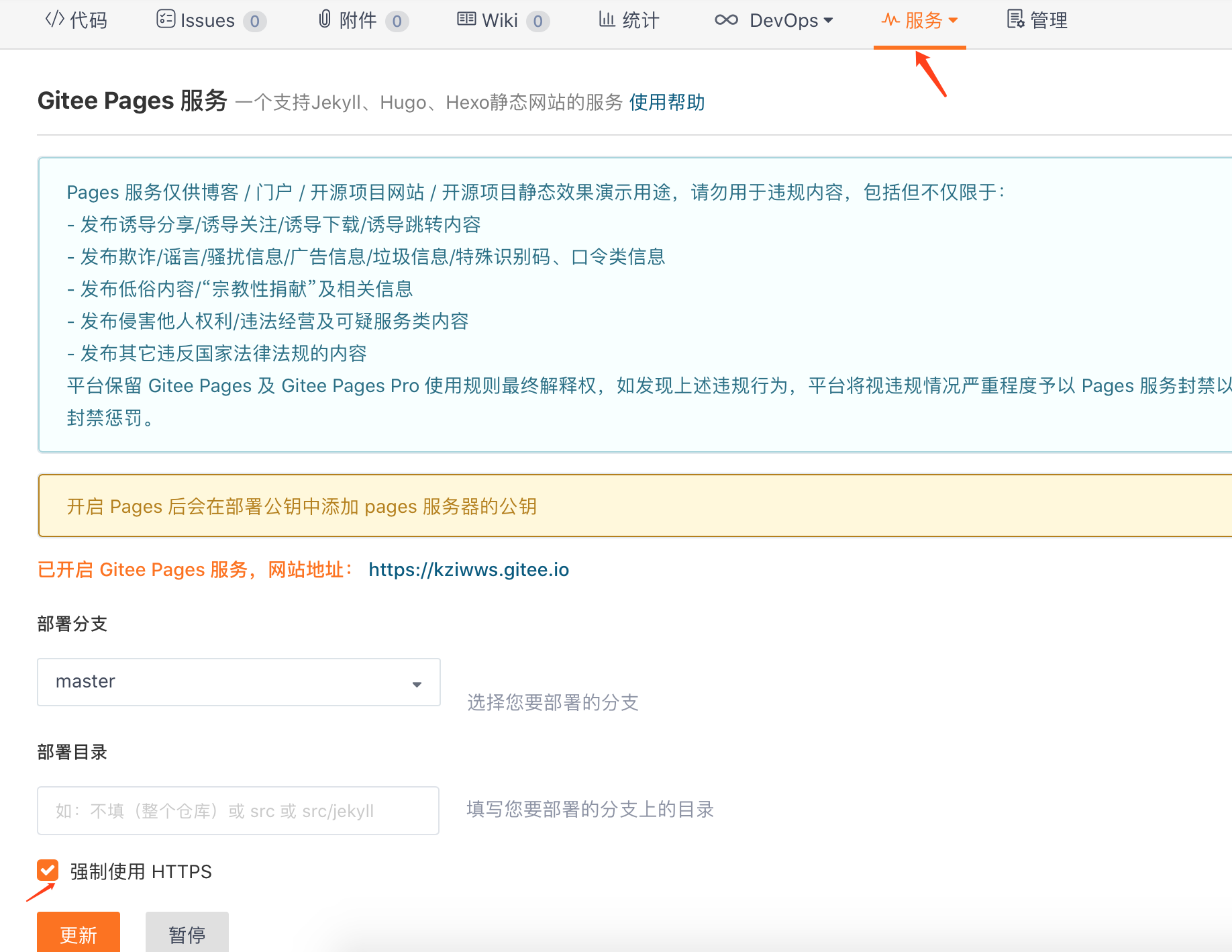 开启码云的pages功能