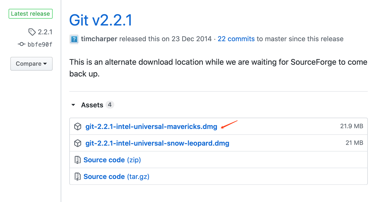 Git安装: 这个git网址, github地址 https://github.com/timcharper/git_osx_installer/releases 下载git-2.2.1-intel-universal-mavericks.dmg